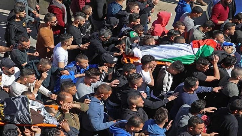 في مدينة جنين، شيعت جماهير غفيرة، اليوم، جثماني الشهيدين شأس كممجي، ومصطفى أبو الرب، اللذين ارتقيا متأثرين بإصابتهما برصاص الاحتلال، خلال مواجهات في جنين، صباح اليوم.