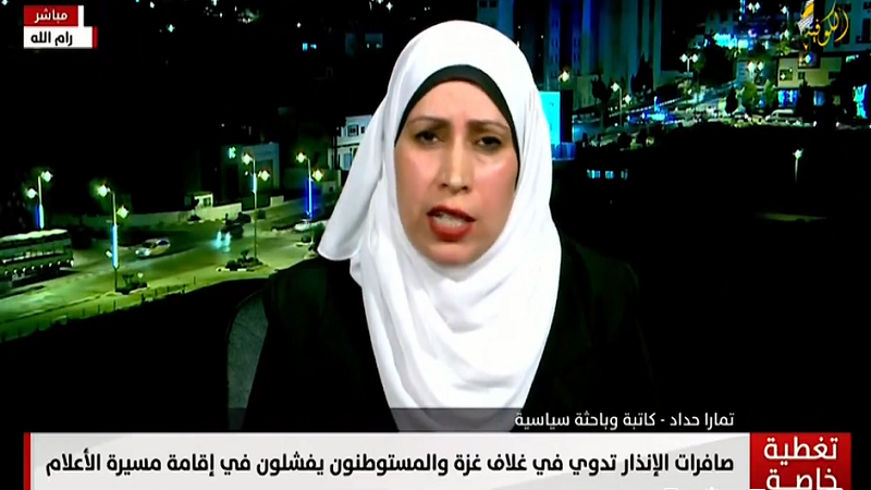 واعتبرت "حداد" في لقائها بقناة "الكوفية" الفضائية، أن السياسات والمخططات العنصرية الاستيطانية تسابق الزمن في نهب الأراضي بهدف التوسع الاستيطاني غير المشروع والمرفوض بشكل قاطع، محذرةً من استمرار اقتحام قطعان المستوطنين للمسجد الأقصى.