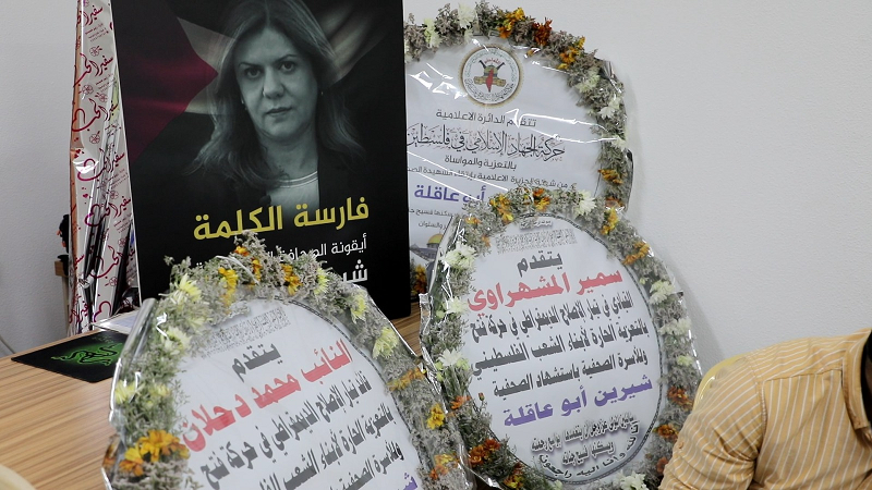 رام الله: أرسل القائد الوطني محمد دحلان، والقيادي في تيار الإصلاح الديمقراطي في حركة فتح سمير المشهراوي اكليلاً من الزهور على بيت عزاء الشهيدة الصحفية شيرين أبو عاقلة.