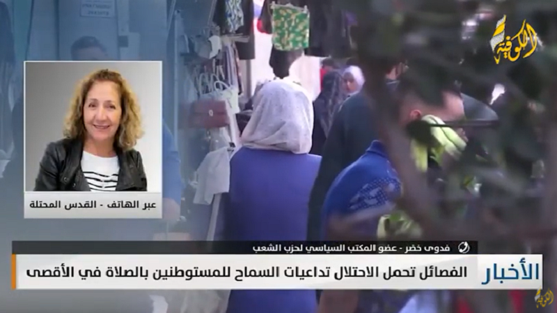 وأكدت خضر، خلال لقائها على قناة «الكوفية»، اليوم الإثنين، أن قرار حكومة الاحتلال السماح للمستوطنين بأداء طقوس تلمودية في المسجد الأقصى مرفوض على المستويات كافة.