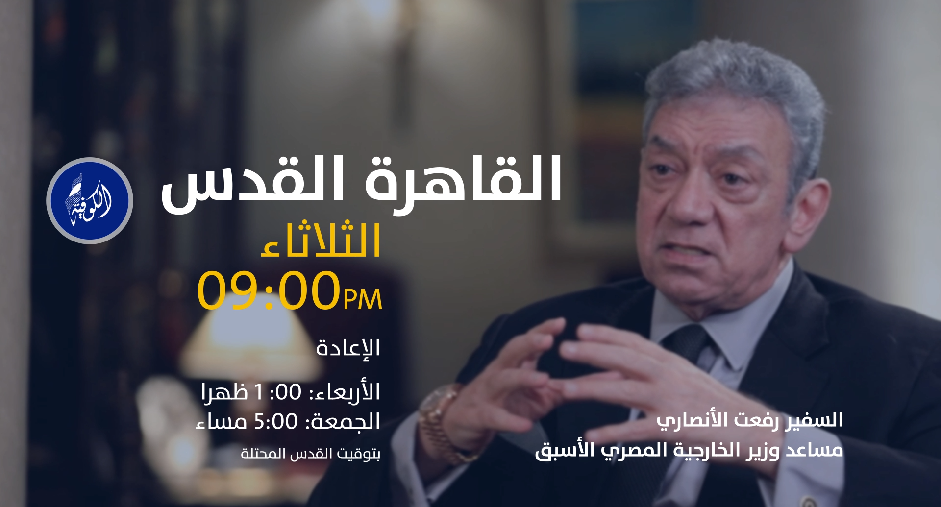 القاهرة: يستضيف برنامج «القاهرة القدس»، الذي يُعرض على قناة «الكوفية» في التاسعة من مساء يوم غد الثلاثاء بتوقيت القدس المحتلة، مساعد وزير الخارجية المصري الأسبق السفير رفعت الأنصاري، للحديث حول خبايا وأسرار المجتمع الإسرائيلي.