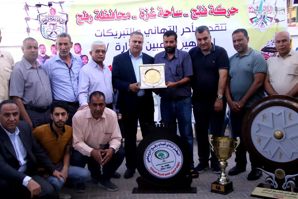 وقدم وفد قيادي يتقدمه أمين سر حركة فتح صلاح العويصي، التهاني والتبريكات لنادي شباب رفح الرياضي، ناقلين تهاني قائد تيار الإصلاح الديمقراطي في حركة فتح، محمد دحلان.