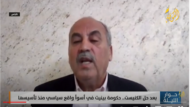 وأضاف، في برنامج " حوار الليلة" على قناة "الكوفية"، أن الائتلاف الحكومي تشكل ضغيفا منذ البداية، وذلك جراء تشكيل الحكومة الحالية من خليط من أحزاب اليمين واليسار والعرب.