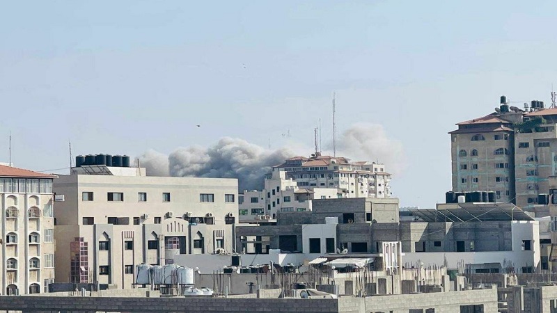 غزة: نشر جيش الاحتلال، مساء اليوم الجمعة، لحظة استهدافه لشقة في برج فلسطين غرب مدينة غزة .