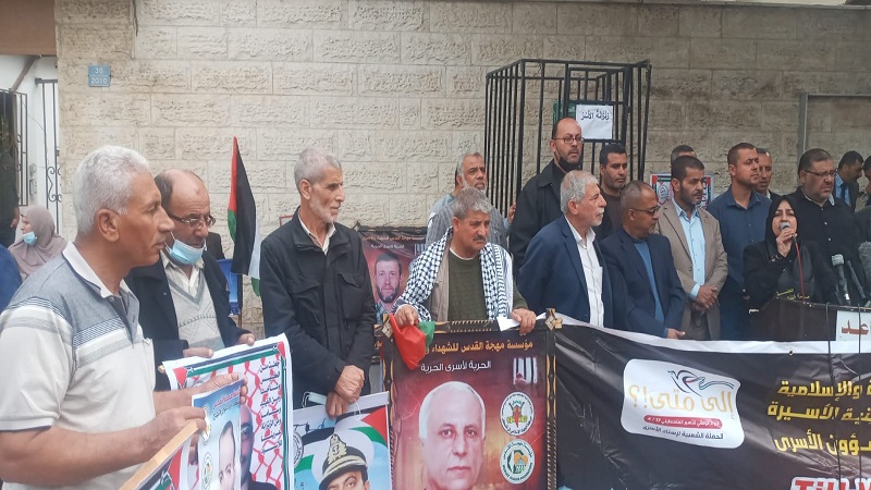 من جانبه، قال مدير مديرية الحكم المحلي الأسير المحرر راغب أبو دياك، إن "وقفتنا اليوم للمطالبة بالإفراج عن الأسرى، في ظل ما يتعرضون له من هجمة شرسة من حكومة الاحتلال ومصلحة السجون، التي تتغنى بأنها فوق القانون وتمارس جرائمها في وضح النهار، من أجل النيل من حياتهم".