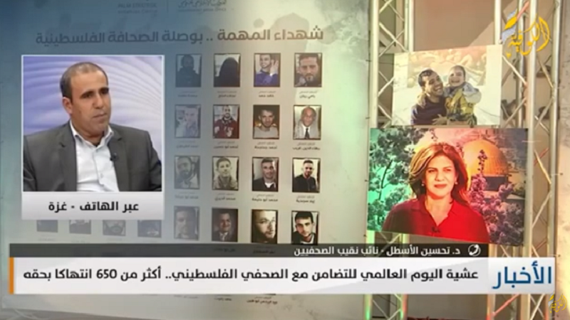 وأكد الأسطل، خلال لقائه على قناة «الكوفية»، عشية اليوم العالمي للتضامن مع الصحفي الفلسطيني، مساء اليوم الأحد، أن سلطات الاحتلال تواصل استهداف الصحفيين بشكل متعمد.