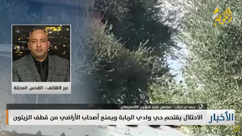 وأضاف ذياب، خلال لقائه على قناة «الكوفية»، اليوم الجمعة، أن بلدية الاحتلال وسلطة الطبيعة تدعيان أن أراضي وادي حي الربابة تعود ملكيتها إلى اليهود.
