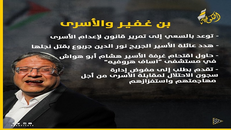 وقالت والدة الأسير سميح الحداد، إن تعيين المتطرف بن غفير في حكومة الاحتلال المقلبة، لن يرهب الأسرى الأبطال.