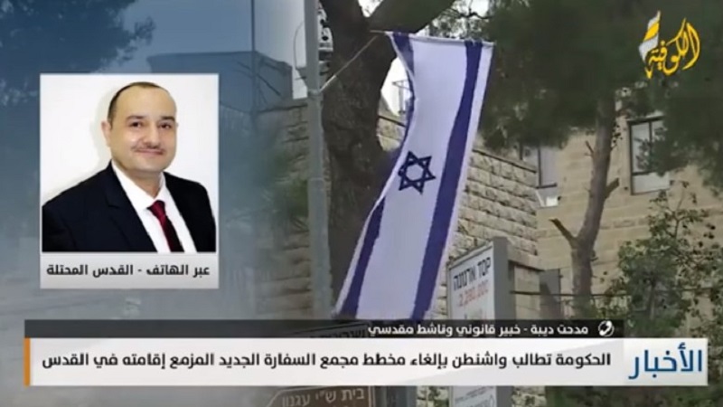 وشدد ديبة، خلال لقائه على قناة «الكوفية»، اليوم الإثنين، على خطورة إقرار اللجنة اللوائية التابعة لبلدية الاحتلال إقامة التجمع العمراني المرافق للسفارة الأمريكية على أراضي فلسطينية.