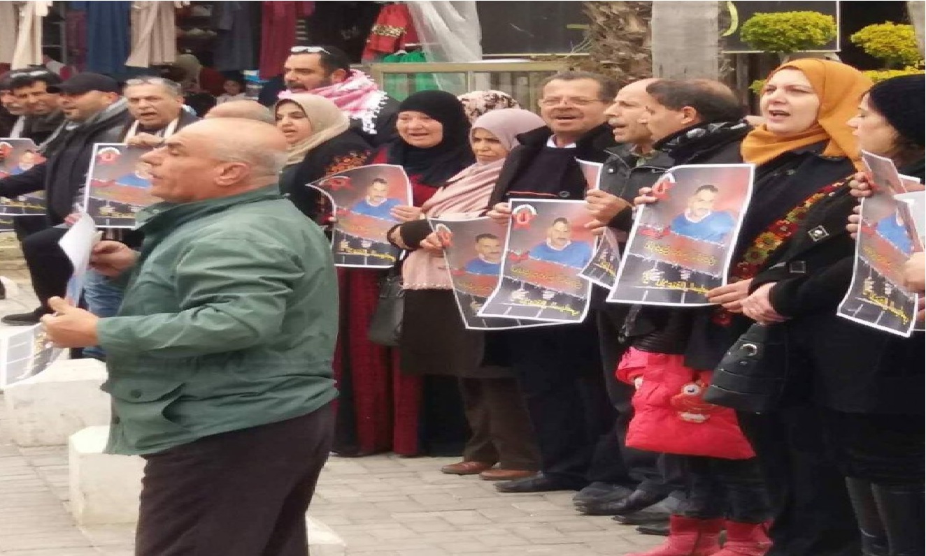 الديمقراطية تتظاهر وسط طولكرم للمطالبة بإطلاق سراح وضاح الزقزوق