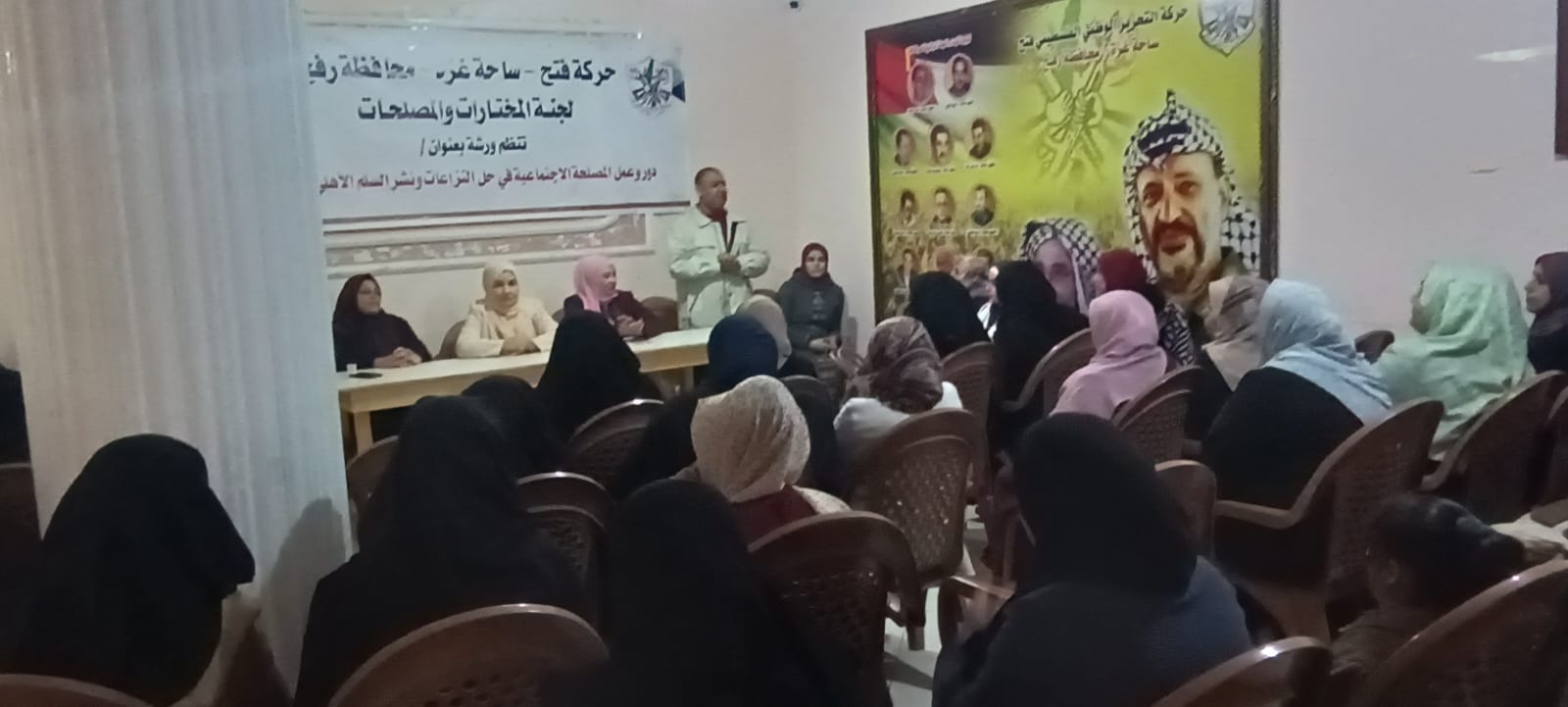 الكوفية غزة: نفذت لجنة المصلحات في مجلس المرأة فى حركة فتح ساحة غزة ورشة بعنوان "دور وعمل المصلحة الاجتماعية في حل النزاعات ونشر السلم الأهلي في المجتمع" في محافظة رفح.