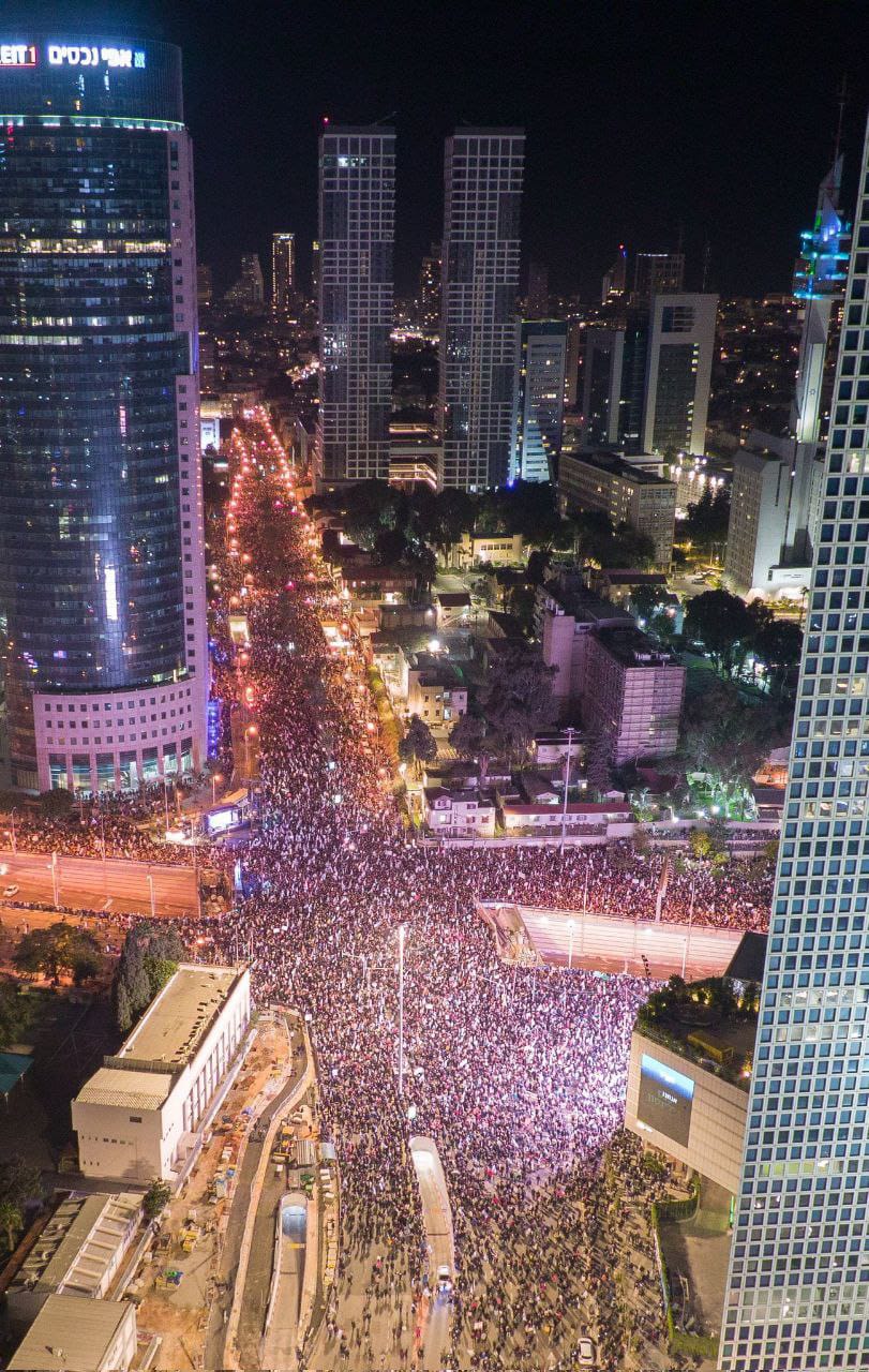 تل أبيب: تظاهر عشرات آلاف الإسرائيليين، مساء السبت، ضد حكومة اليمين المتطرف التي يترأسها بنيامين نتنياهو وذلك في ساحة "هبيما" في تل أبيب، وفي حيفا والقدس، وبئر السبع.