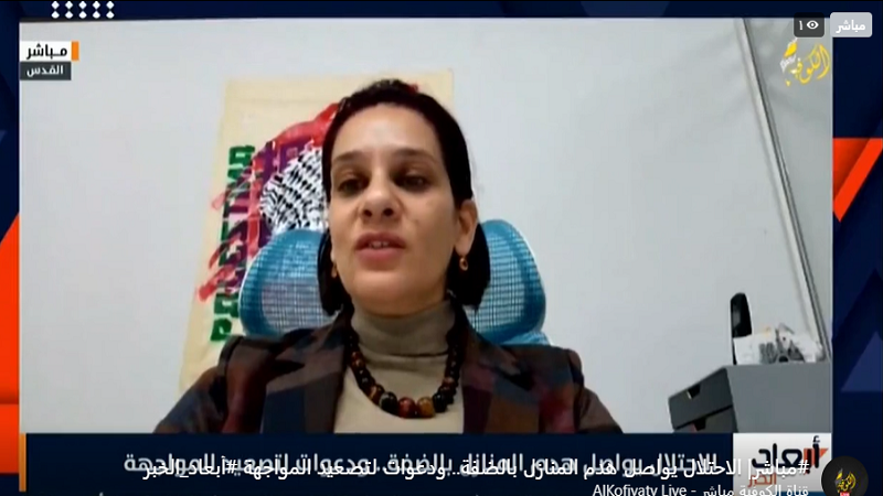 القدس المحتلة: قالت عضو المكتب السياسي لحزب فدا، ريتا النتشة، إن "الاحتلال يستهدف الشعب الفلسطيني بالقتل والتهجير، وفرض وقائع جديدة في المسجد الأقصى، وتغير الصفات القانونية والتاريخية له".