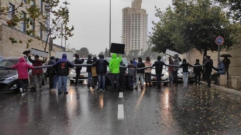 وربط المحتجون بعضهم ببعض، بينما تمدد آخرون على الأرض لإغلاق الطرق المؤدية إلى وزارات المالية والداخلية والاقتصاد الواقعة قرب مبنى "الكنيست" الإسرائيلي بالقدس.