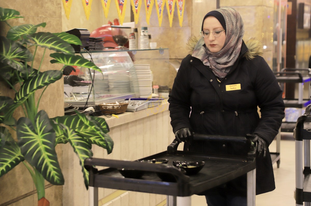 لم تثني حاجة الفلسطينية رؤوفة فرحات، 36 عاماً، لتأمين مصدر دخل، أن تعمل في مهنة تعتبر نادرة بقطاع غزة، فلجأت للعمل بداخل مطعم في مدينة غزة، لتستقبل الزبائن وتكون مساعدة في تقديم الطعام.