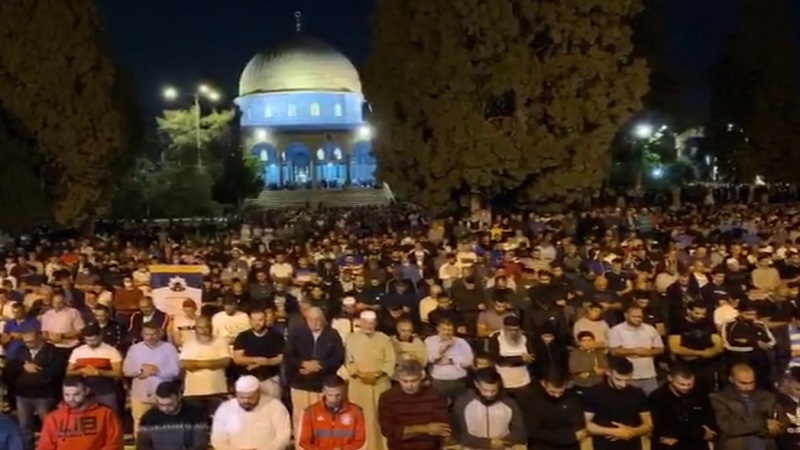 وأدى قرابة 130 ألف مصل صلاتي العشاء والتراويح في مصليات المسجد الأقصى المبارك وساحاته.