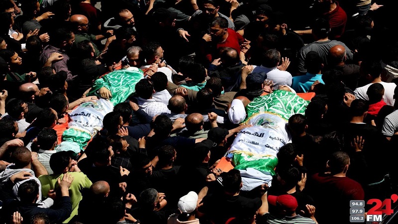 نابلس: شاركت جماهير غفيرة في محافظة نابلس، اليوم الخميس، في مسيرة تشييع جثامين الشبان الثلاثة حسن قطناني وإبراهيم جبر ومعاذ المصري، واللذين استشهدوا بعد الاشتباك مع جيش الاحتلال وقواته الخاصة أثناء محاصرتهم في البلدة القديمة بنابلس.