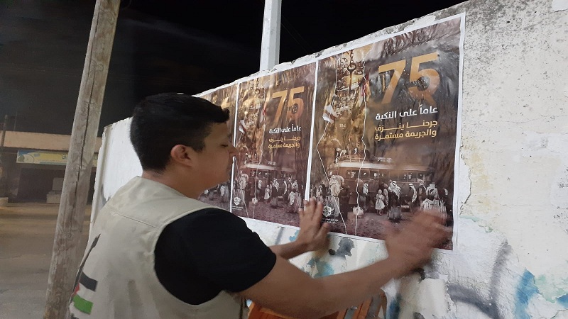 متابعات: استكملت لجنة اللاجئين سلسلة فعالياتها الخاصة بإحياء الذكرى الـــ  75 للنكبة الفلسطينية، وزعت لجنة اللاجئين في حركة فتح بساحة غزة، اليوم الثلاثاء، الملصق الخاص بذكرى النكبة لهذا العام، في المرافق العامة والمحال التجارية، والجدران في المحافظات الخمس.