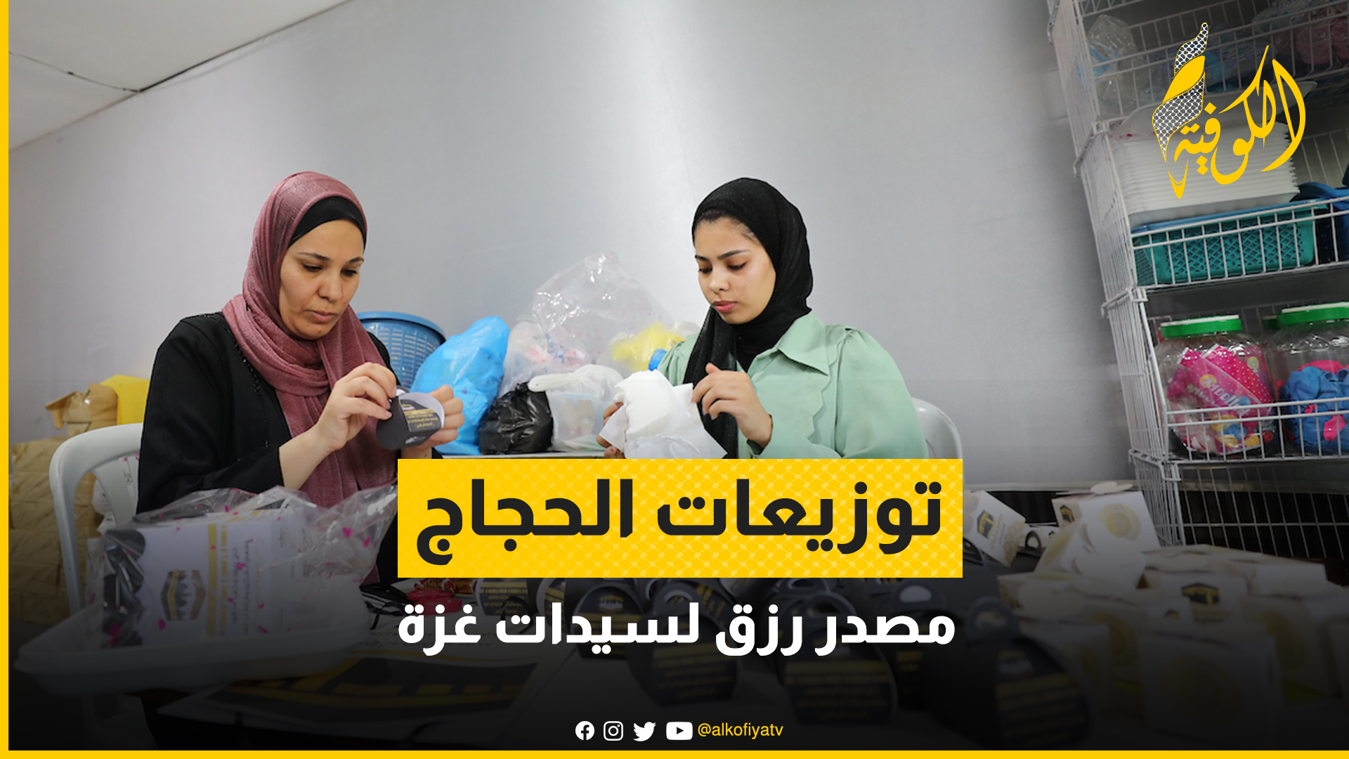صور|| توزيعات الحجاج.. قصاصات ورقية مبهجة تشكل مصدر رزق لسيدات غزة