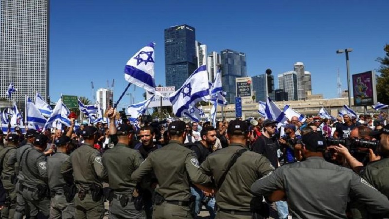 وتجمع المتظاهرون عند شارع "روتشيلد" وسط تل أبيب، واتجهوا إلى ساحة "كابلان"، ضمن الاحتجاجات المستمرة منذ نحو 8 أشهر ضد الخطة.