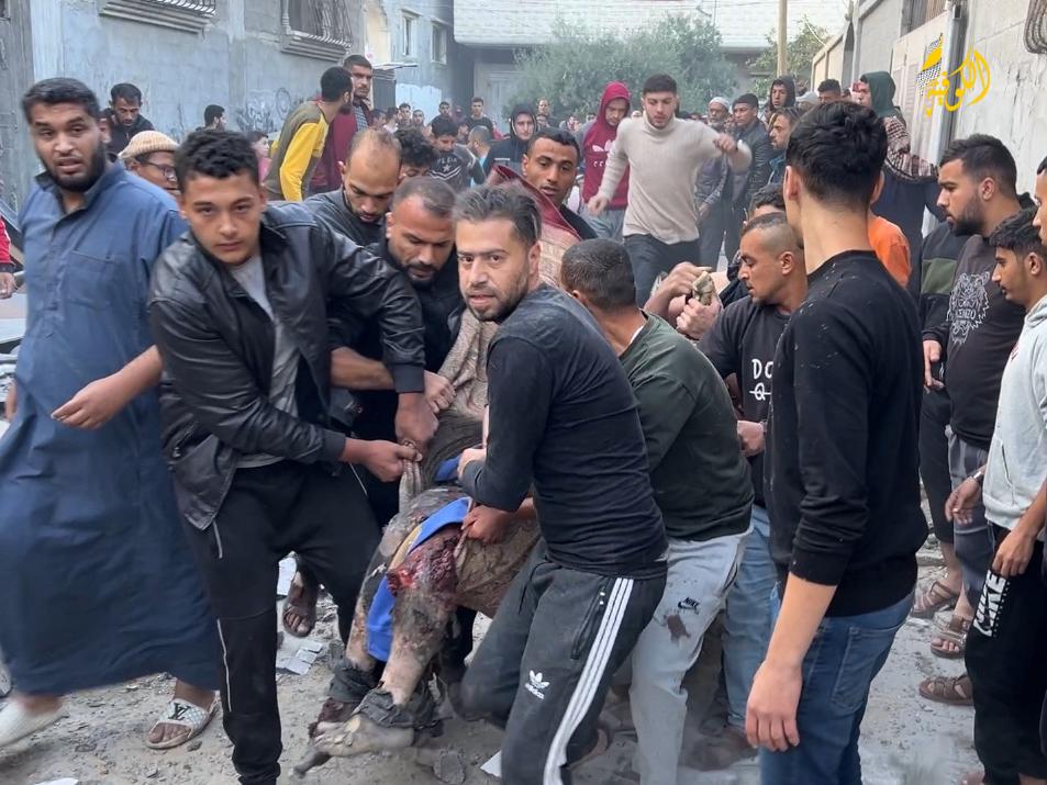 الكوفية خانيونس: لحظة انتشال شهداء ومصابون في قصف إسرائيلي لعائلة قنن بالقرب من مستشفى ناصر غرب مدينة خانيونس.