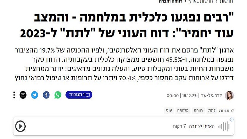 ترجمة خاصة للكوفية: نقلت صحيفة "يديعوت أحرونوت" العبرية عن منظمة "عطاء" المعنية بقياس الفقر والرخاء الاجتماعي في دولة الاحتلال بيانات رسمية بشأن مستوى معيشة الفرد خلال العام الجاري 2023.