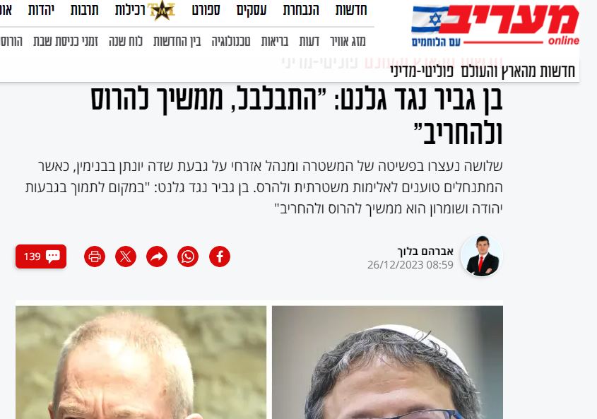 بن غفير يهاجم غالانت ويصفه بـ"المُرتبك"
