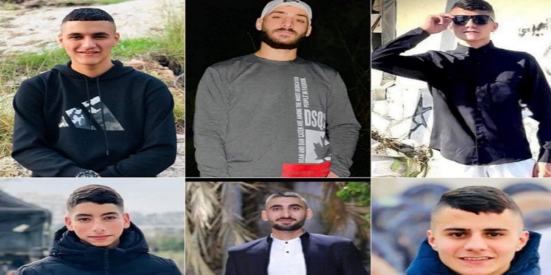 والشهداء هم: أحمد أنور حمارشة (19 عاما)، وأحمد  عبد الرحمن عيسى (19 عاما)، وادهم محمد فحماوي (23 عاما)، ويزن احمد وحيد فحماوي (23 عاما)، وفارس حسام فحماوي (29 عاما)، وحمزة أحمد مصطفى فحماوي (17 عاما)، فيما اصيب شاب (24 عاما) بجروح خطيرة بالرأس وصفت حالته بالحرجة.