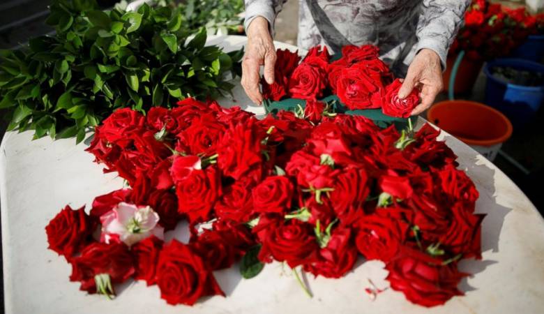 بائع ورد يسعى لرسم الابتسامة على وجوه المواطنين في ظل العدوان على غزة