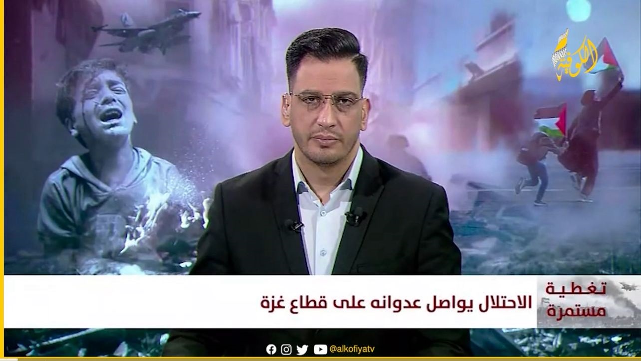 تتقدم قناة "الكوفية" بأحر التعازي للزميل جمعة أبو شومر مذيع القناة باستشهاد والدته وإصابة والده جراء قصف الاحتلال منزلا لعائلة ياغي ضمن مجزرة ارتكبها الاحتلال وسط قطاع غزة راح ضحيتها نحو 40 شهيدا وأكثر من 100 مصاب.