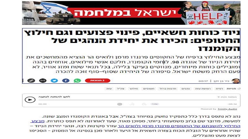 متابعات: كشفت صحيفة "يديعوت أحرونوت" عن أن الجيش الإسرائيلي استعان خلال عملية الإفراج عن المخطوفين الشهر الماضي بوحدة كوماندوز خاصة تسمى "سائق الكوماندوز".