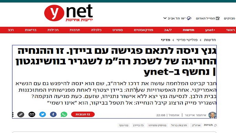 يديعوت أحرونوت: «غانتس» حاول ترتيب لقاء مع الرئيس الأمريكي من دون علم رئيس الوزراء
