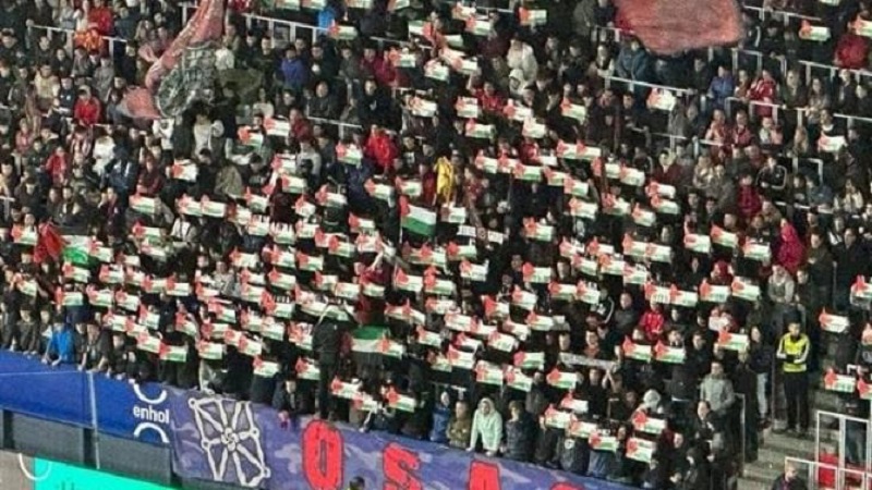 متابعات: شهدت مباراة الفيصلي والوحدات، في قمة الأسبوع الـ 15 من الدوري الأردني لكرة القدم، توجيه رسالة دعمٍ واضحة إلى فلسطين وشعبها، وللصامدين في قطاع غزّة، على غرار ما فعلت أيضاً جماهير نادي الرجاء الرياضي المغربي.