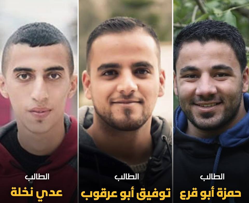 وأكدت المصادر المحلية، أن قوة من "المستعربين" داهمت حرم الجامعة واعتقلت كلا من: "حمزة أبو قرع، وتوفيق أبو عرقوب، وعدي نخلة".