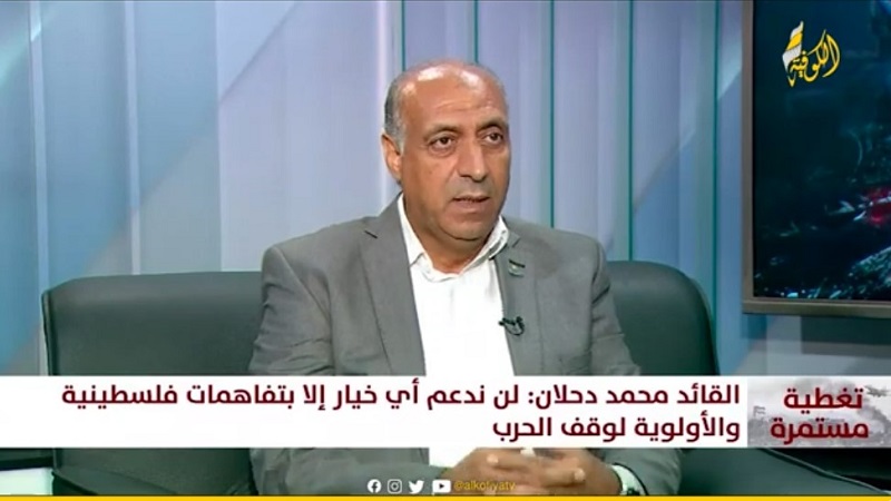 وأكد الرقب، في لقاء عبر شاشة قناة «الكوفية»، أنه لم يستغرب من طرح اسم القائد دحلان من قبل الجهات التي تجلس لوضع ترتيبات اليوم التالي للحرب على غزة، لكن لا يتم سؤاله أو مشاورته.