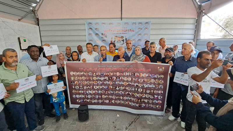 وفي نهاية الحفل، نظمت النقابة وقفة تضامنية مع الصحفيين بعد مرور عام على حرب الإبادة الوحشية، وإسنادا للصحفيين الذين يواجهون الموت جراء الاستهداف الممنهج لهم من قبل الاحتلال الإسرائيلي، تحدث خلالها نائب نقيب الصحفيين تحسين الأسطل، موضحا ما يتعرض له الصحفيون الفلسطينيون من انتهاكات يومية، مطالبا المؤسسات الأممية بتوفير الحماية للصحفيين.