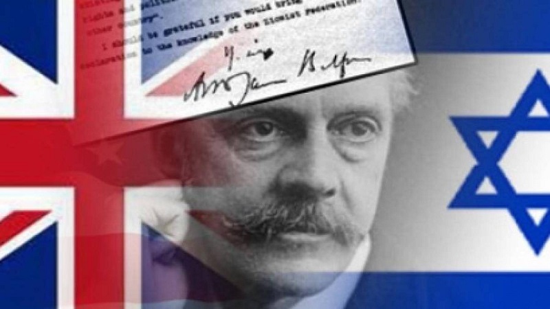 وفي الثاني من تشرين الثاني/نوفمبر 1917، أرسل وزير خارجية بريطانيا في تلك الفترة، آرثر جيمس بلفور، برسالة إلى اللورد ليونيل والتر روتشيلد أحد زعماء الحركة الصهيونية آنذاك، لتُعرف فيما بعد باسم "وعد بلفور".