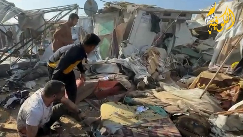 وأضاف أن قصفا شنه جيش الاحتلال على خيمة للنازحين في محيط مستشفى شهداء الأقصى بدير البلح ما أدى لاستشهاد مواطنين اثنين وإصابة آخرين.