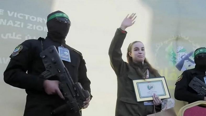 غزة: سلَّمت كتائب الشَّهيد عز الدين القسَّام الجناح العسكري لحركة حماس، اليوم الخميس، المجندة "الإسرائيلية" الأسيرة آجام بيرغر، في مخيم جباليا شمال قطاع غزة.