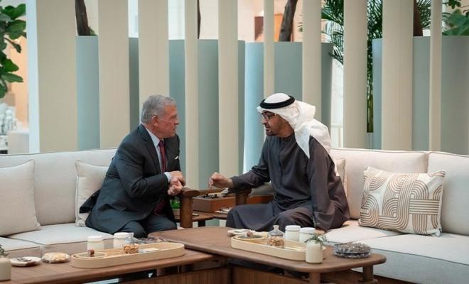 جاء ذلك خلال مباحثات أجرياها في قصر الشاطئ بأبوظبي، في إطار زيارة رسمية (غير معلنة المدة) بدأها عاهل الأردن في وقت سابق الأحد، وفق بيان للديوان الملكي.