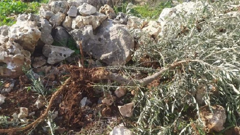 مستوطنون يقطعون أشتال زيتون ويسرقون معدات بناء في بيت أمرين