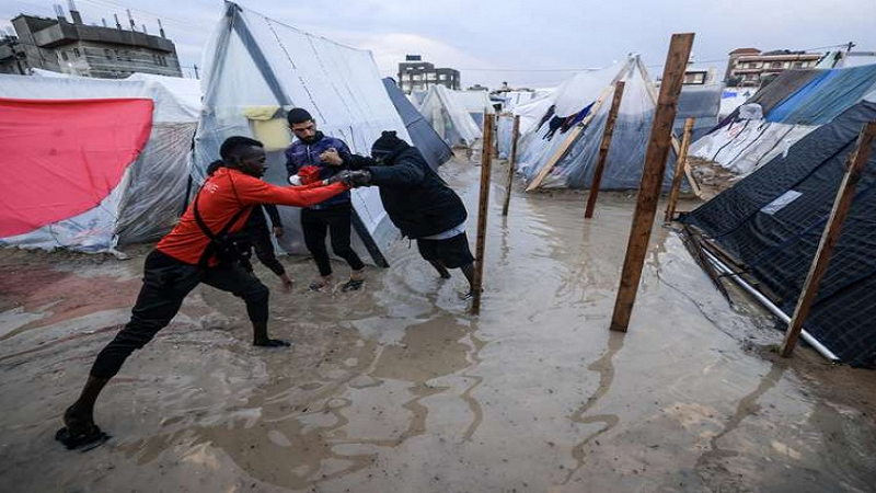 المنظمة الدولية للهجرة: أمطار وسيول تهدد حياة مئات آلاف النازحين في غزة