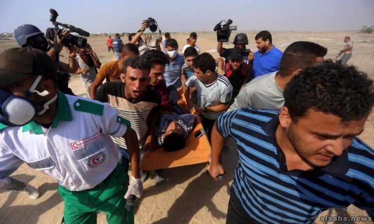 وكانت قوات الاحتلال أصابت اليوم، 3 مواطنين شرق مخيم العودة بمنطقة ملكة شرق غزة، حيث تشهد المناطق الحدودية لقطاع غزة مع الأراضي المحتلة تظاهرات سلمية شبه يومية منذ 30 مارس الماضي.