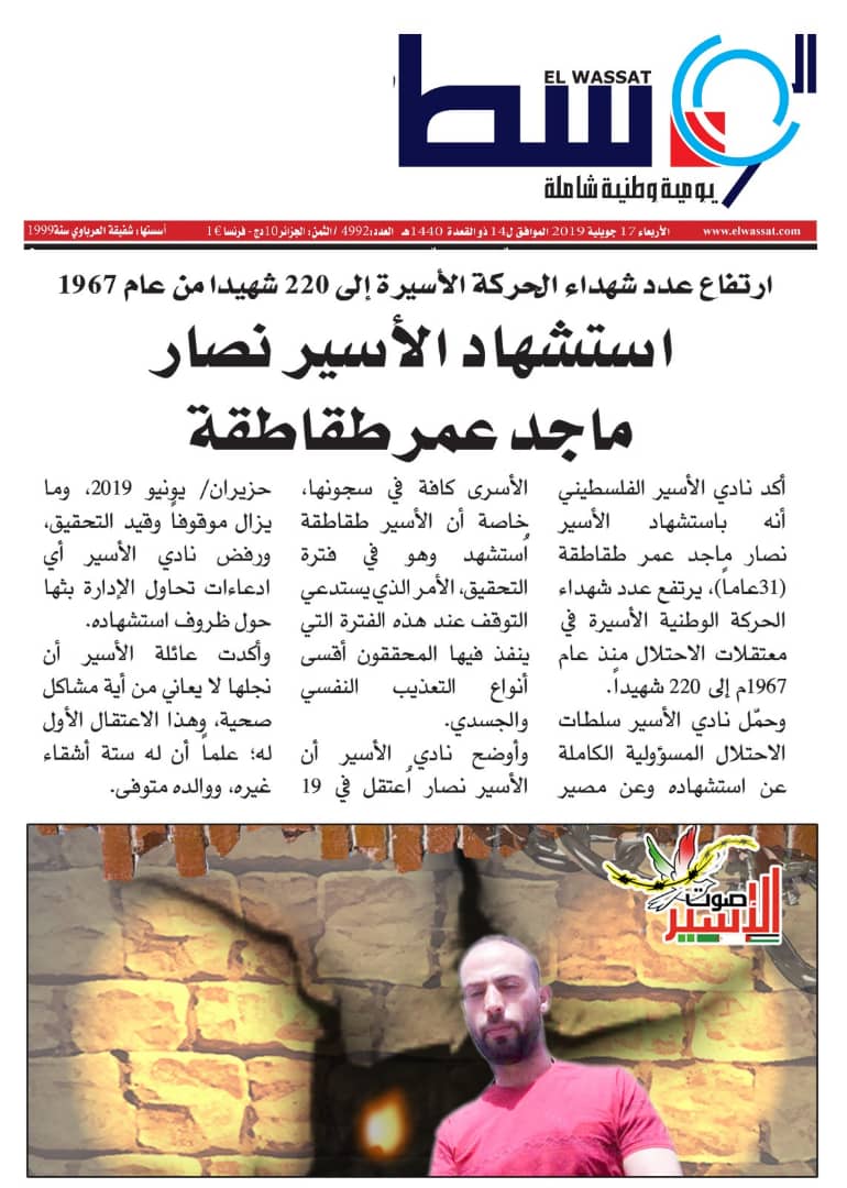 استشهاد الأسير طقاطقة يتصدر عناوين صحف الجزائر