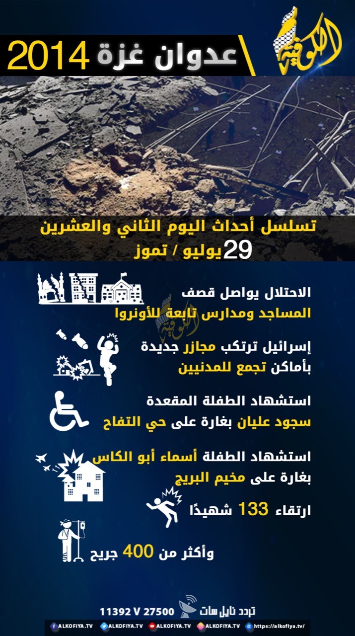 عدوان غزة 2014.. تسلسل أحداث اليوم الثاني والعشرين