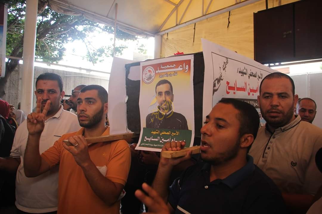 بالصور|| جنازة رمزية ومسيرات غاضبة في عدة مدن فلسطينية احتجاجا على استشهاد الأسير السايح