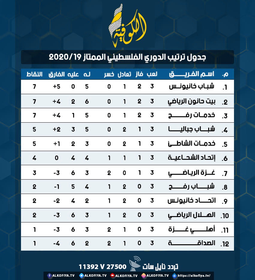 ورفع شباب خانيونس رصيده إلى 7 نقاط في المركز الأول، والصدارة، وبفارق الأهداف أمام بيت حانون الرياضي، وخدمات رفح على التوالي، وبقي رصيد الهلال نقطتين اثنتين بالمركز العاشر، وبفارق الأهداف خلف شباب رفح، واتحاد خانيونس على الترتيب.