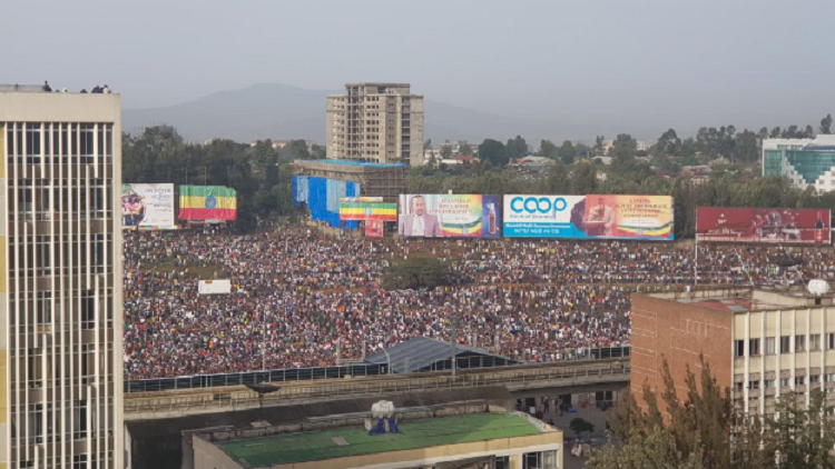 وتجمع آلاف الإثيوبيين صباح السبت في ساحة مسكل وسط العاصمة دعما لرئيس الوزراء الجديد، حيث تولى آبي أحمد رئاسة الحكومة في مارس الماضي خلفا لرئيس الوزراء هايلي مريام ديسالين الذي أعلن استقالته في فبراير.