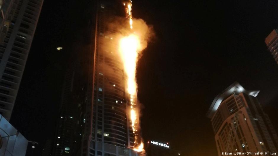 ونقلت صحيفة البيان الإماراتية أن فرق الدفاع المدني بدبي أخمدت حريقا اندلع ببرج قيد الإنشاء مكون من أربعين طابقا في جميرة "فلج سيركل".