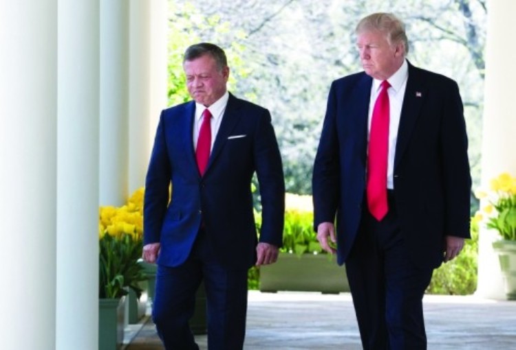 واشنطن: أكد العاهل الأردني عبد الله الثاني، خلال لقائه بالرئيس الأميركي دونالد ترمب، أن حل الدولتين الذي يضمن إقامة الدولة الفلسطينية المستقلة على التراب الوطني الفلسطيني، وعاصمتها القدس الشرقية هو السبيل الوحيد لإنهاء الصراع الفلسطيني الإسرائيلي، ويشكل ركيزة أساسية لتحقيق الأمن والاستقرار في المنطقة برمتها.